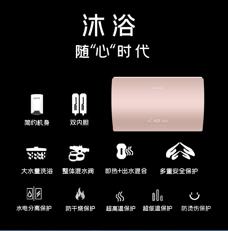 產品中心 > 速熱電熱水器系列> 速熱式電熱水器DTR-P30玫瑰金智能恒溫出水